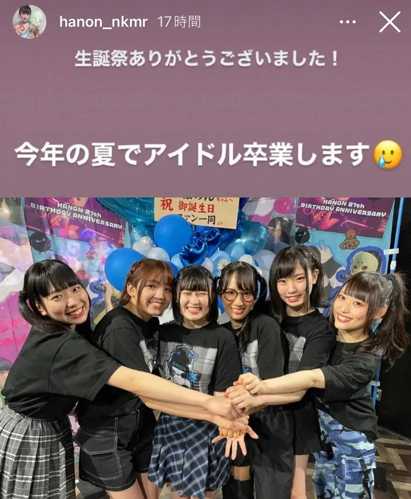 続けて「腰痛で卒業ではなくて痛い中でもアイドル人生やりきったなと思ったのでこの決断をしました」と報告。「最後まで悔いのないようにがんばります!残り少しですがはのんちゃんのこと推してくれると嬉しいです」と呼びかけた。