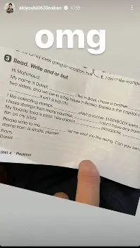 中尾は困った表情の写真を投稿し「誰か今から息子の英語の家庭教師しに来てくれん?って言いたい」とつづった。さらに、英語の問題の写真に「omg」(oh my God.の略 なんてこった)との文字を添えた。続いて「みんなありがとう でもね、俺が意味わかってないから教えられないよね…」と続けた。