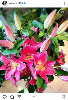 小川はキレイに咲いた「百合の花」の写真を3枚投稿し、「頂いた時には全部蕾だった 綺麗なピンク色に開きました」と、花の成長に感慨深げ。「花粉は丁寧にとらなくちゃね(服とかに付いたら取れないのでね)」と記した。花は玄関に飾ってあるという。