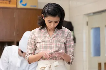連続テレビ小説「ちむどんどん」第29話。レストラン「アッラ・フォンターナ」で笑顔を見せる暢子(黒島結菜)(C)NHK