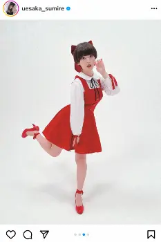 上坂は「ねこ娘に扮して…!舞台『ゲゲゲの鬼太郎』、人生初の舞台です…!精一杯がんばります!!よろしくお願いいたします!」と舞台への意気込みをつづり、ねこ娘の衣装を着た写真をアップ。おかっぱのヘアスタイルに大きなリボンをつけ、ワンピースにハイヒールと赤っぽい服装に身を包んでいる。