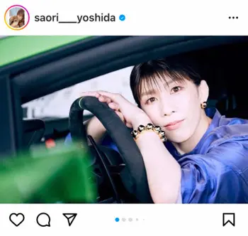 吉田沙保里さん 初体験ランボルギーニとの“共演”で美脚披露 「すげー綺麗」「松たか子さんかと」の声
