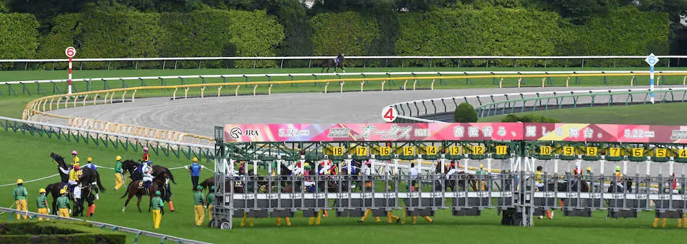 <東京11R・オークス>スタート前に放馬したサウンドビバーチェ(中央奥)