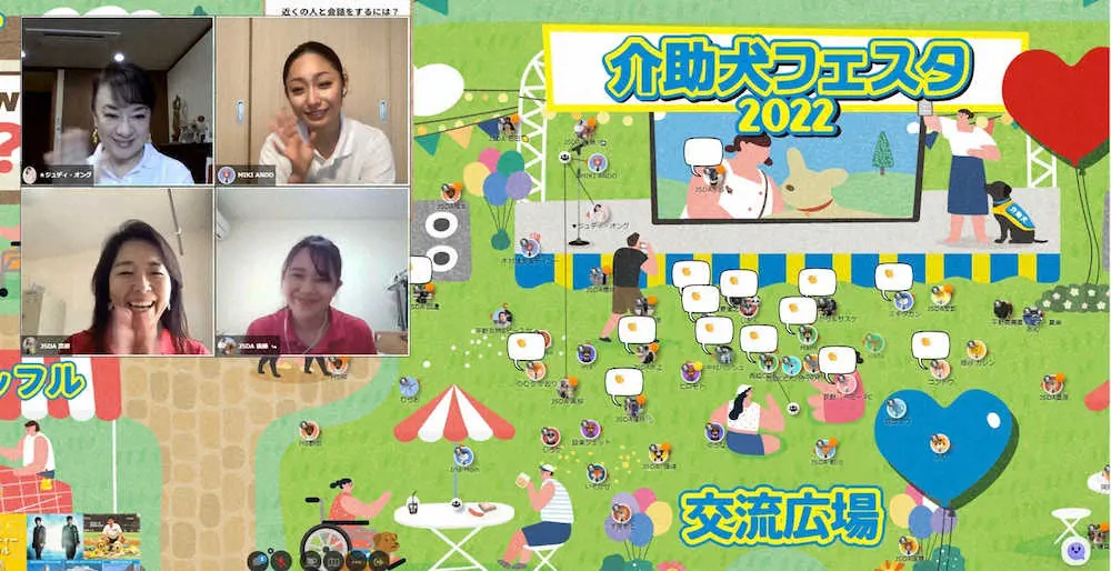 この日はオンラインのトークショーに加え、バーチャル空間のコンテンツにアバターとして登場。ファンと交流しながらイベントを楽しんでいた。安藤は「介助犬をまだ知らない方々に、いかに知ってもらい理解をしてもらうことが大事だなと感じました。介助犬を知って見て、触れてもらう機会をみんなで作り上げて行けたらうれしいです」