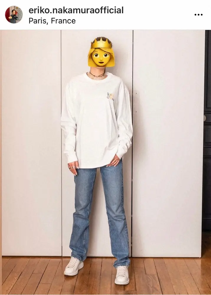 中村は「男の子は青、女の子は赤。そんな時代は遠い昔…我が家では兄弟3人で服やアクセサリーを共有しています!」と投稿。白のロングTシャツとジーンズのコーディネートの写真では「写真1枚目 長女18歳、身長174センチ 写真2枚目 長男15歳、身長181センチ 同じTシャツとジーンズ共有」と姉弟で見事に着回しをしている様子を公開した。