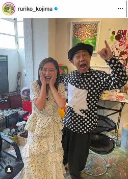 小島は「憲武さんと初めてお会いしました!アトリエにお邪魔して個展のお話をたっぷり伺いました~」と木梨との2ショットを公開した。