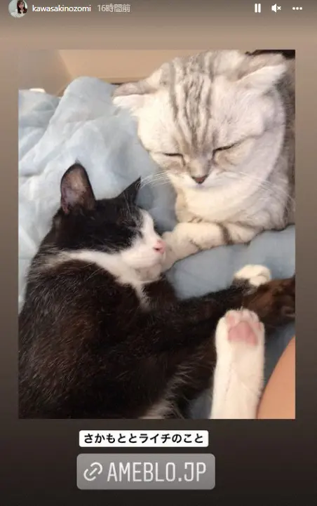 さらに、ブログでは愛猫だった「さかもと」「ライチ」についての真実をつづった。「アレクと心の整理がついてなく ずっと書いていなかったのですが さかもとは2020年の冬に ライチは2020年の春に亡くなりました」と明かした。「2年程経ったいまでも まだ心の整理が出来ず このことをブログに書くこともすごく本当は辛くて少し文字を書くだけでも泣いてしまうし ブログを見てくれてる方に伝えたりするのもずっと難しくて ちょっとこれはちゃんと報告出来ないし 一生ブログで報告するのは難しいかなと思っていました」とこれまで明かしていなかった理由を記した。