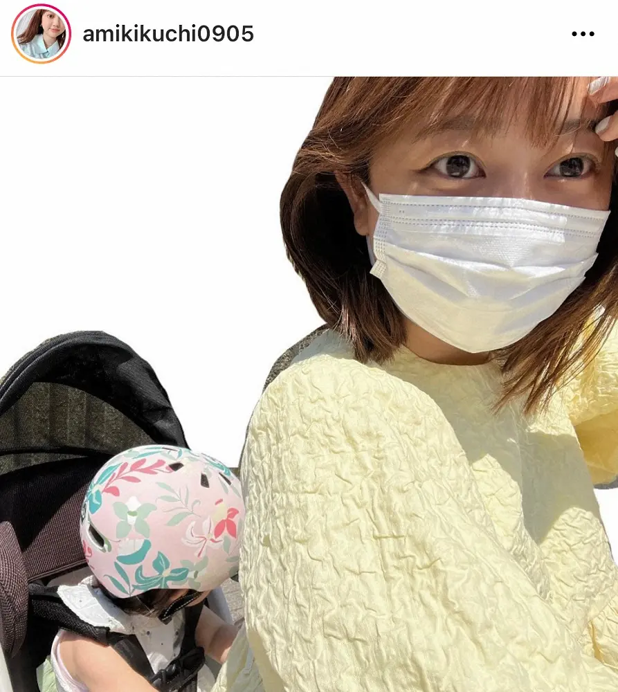 菊地は「もし今インタビューで、何してる時の自分が一番輝いてますか?って聞かれたら、ママチャリ乗ってる時ですって即答しちゃいそうな位、娘を乗せてレッツゴー!してママチャリ乗るのが好き(今だけ?笑)」と投稿。「自転車乗ってる所撮りたくて、誰もいない駐輪場で撮っちゃった笑」と娘との自撮り写真を披露した。