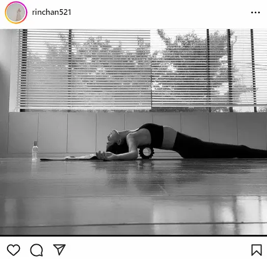 あおむけにリラックスしながらトレーニングする画像を投稿。「今日は2つ行く所があってね!1つは最近始めたばかりのジャイロトニック!これが素晴らしく良くて!!」と感激した様子。「もう以前のようにストイックに激しく鍛えたりする事はできないし違うのかなって」とつづった。
