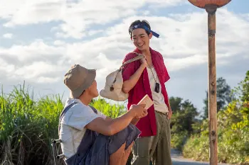 名護のハンバーガーショップ「SUNSET BURGER」。横浜・鶴見から沖縄の実家に突然帰ってきた賢秀(竜星涼)が、製糖工場を営む金吾の父・銀蔵(不破万作)と会っていた。