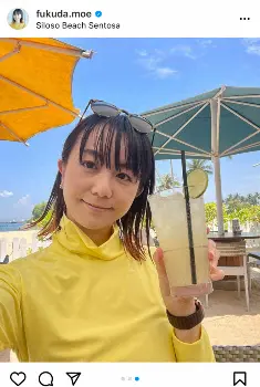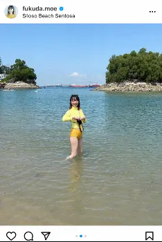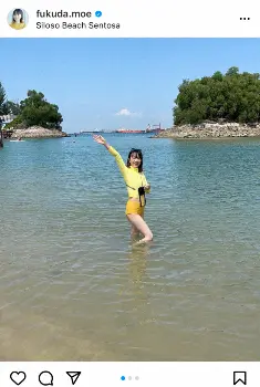 シンガポール在住のタレントの福田萌(36)が28日に自身のインスタグラムを更新。シンガポールに住み始めて、はじめて海に入ったことを明かした。