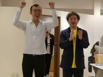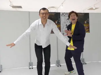 午後3時半、控え室を出たジョイマンは、サイン会の列を見て大喜び。高木晋哉(41)は「ありがとう~オリゴ糖」「うれしい~キョンシー」と自らのラップネタで気持ちを表現。「緊張してピリピリして、どうなるんだろうと思ってました」と安堵(あんど)の表情。最初の客は午前5時から並んでいたと聞き、池谷和志(41)は「なんだこいつ~!」とツッコミのフレーズを使って喜んだ。