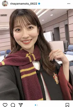 山本アナは「エクスペクトパトローナム」とコメントし、映画「ハリーポッター」の作中に登場する、グリフィンドール柄のローブとマフラーを身にまとった姿を披露。「ずっと着てみたかったローブとマフラー」「嬉しくてたくさん写真撮っちゃいました」とつづった。
