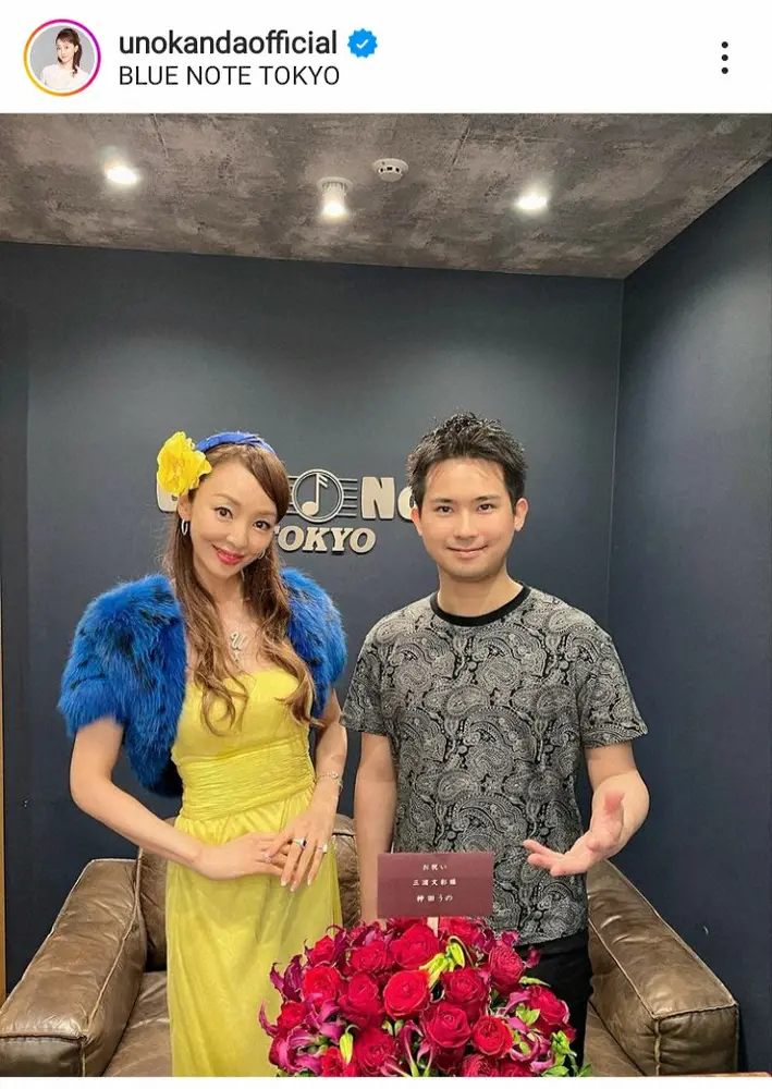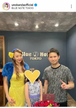 「世界でご活躍のヴァイオリニスト三浦文彰さんのBlue Note TokyoでのLIVE 娘を連れて伺って参りました」と書き出すと、Tシャツ、パンツ姿の三浦との2ショットをアップ。神田は黄色のワンピースに青いファーのような素材のボレロをまとい、髪には青のカチューシャに黄色の花をつけた姿で笑みを浮かべている。
