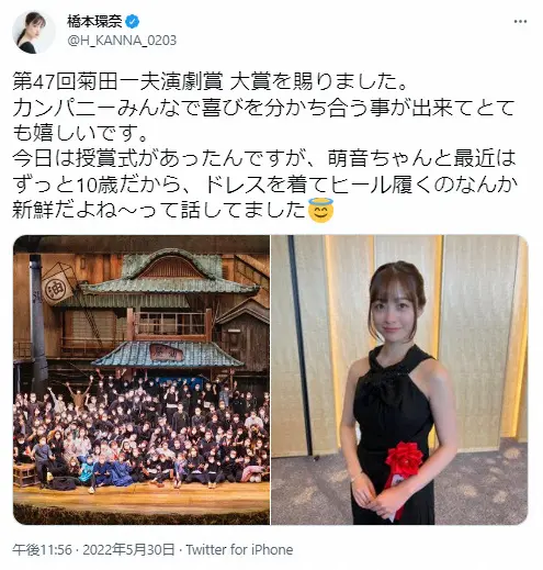 橋本環奈公式ツイッター(@H_KANNA_0203)から 橋本環奈 菊田一夫演劇賞授賞式で上白石萌音とのやりとり明かす 「最近… ギャラリーで見る この記事のフォト 2022年05月31日の画像一覧 もっと見る 2022年05月31日の画像をもっと見る