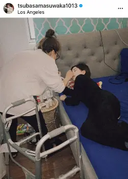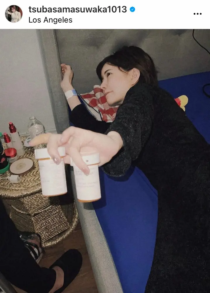 滞在先の米ロサンゼルスで仙骨を骨折したモデルでタレントの益若つばさ(36)が5月31日、自身のインスタグラムを更新。友人宅で静養する痛々しい姿を公開した。