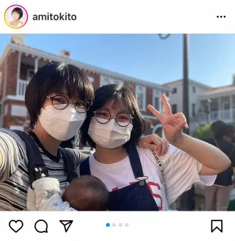 「姪っ子とデート」と記し、今年3月に誕生した長男を抱き、姪とデートするショットを公開。ヘアスタイルは黒髪のショートカット。加えて、大きめの黒ぶちメガネ、白のマスク姿でそろえた。「可愛い可愛い姪っ子からお誘いをいただいたら、どんな予定もキャンセルして合わせちゃう もう高3だけど、ずっと可愛い!! いつまでもおばちゃんと遊んでくれーーー」とつづった。
