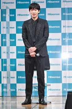 俳優の綾野剛(40)が2日、都内で行われた「ハイセンスジャパン」新商品・新CM発表会に出席した。