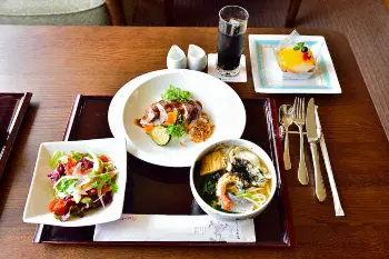 永瀬は昼食が「海鮮淡路島ぬーどる」と「淡路牛と淡路野菜のステーキ丼」(共にハーフサイズ)「アイスコーヒー」と「なるとオレンジ」。おやつは午前、午後とも「ホットコーヒー」と「アイスコーヒー」。
