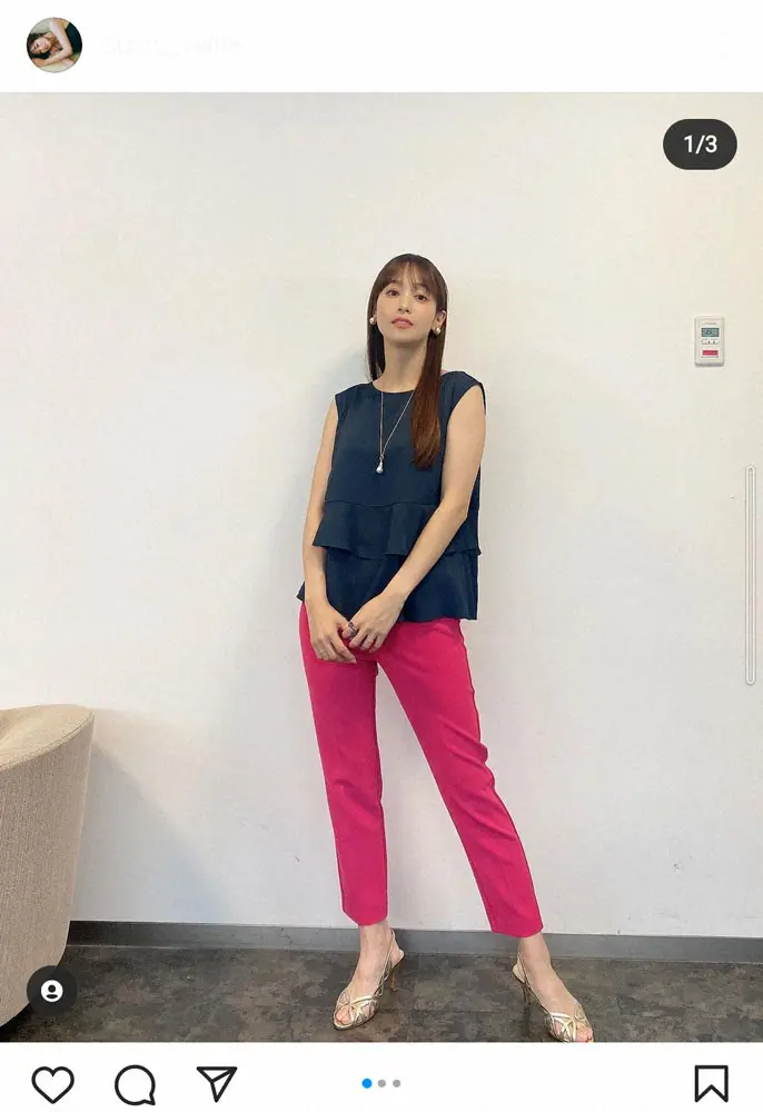鷲見玲奈 美脚すぎる!まぶしいカラーパンツ姿を披露 「身体の半分、足!!」「美脚…」の声