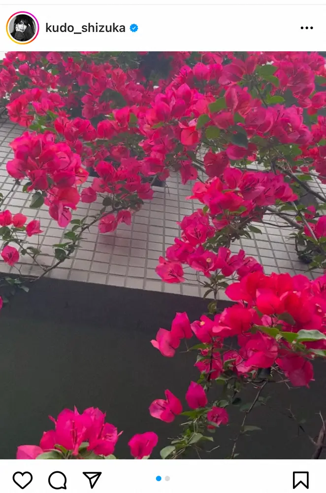 歌手の工藤静香(52)が7日、自身のインスタグラムを更新。母の家に美しく咲いたブーゲンビリアを披露した。