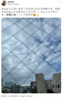 手術の内容などは書かれていないが、フォロワーからは「無事生還を祈っています」「頑張ってください」「元気な姿見せてください」「手術の成功を祈ってます!」など激励の声が多く寄せられている。