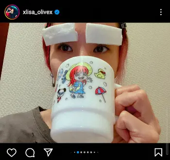 そして自身がグッズを使用している写真を数枚アップ。マスクやバスタオル、グラスなど、かわいいグッズが盛りだくさんだったが、その中のすっぴん?らしき1枚には“極太眉毛”のLiSAが。どうやらコットンを眉毛に乗せているよう。そのかわいくもインパクトのある写真に、フォロワーは「かわいい!」「おうちりさグッズ毎回かわいくて大好き」「肌めちゃ綺麗じゃん」「激眉の呼吸ですね(笑)」などの声が寄せられていた。