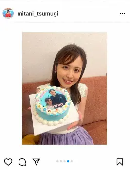 テレ朝三谷アナ “同期”久慈暁子を渡辺雄太との2SHOT写真ケーキで祝福「久慈子が結婚なんて」と感激