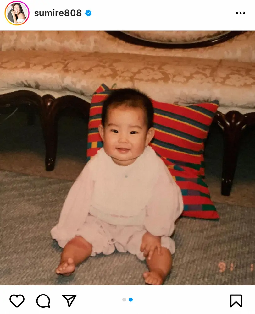 すみれは「ママから送られてきた小さい頃の私の写真」とつづり、抱っこされている赤ん坊の写真をアップ。「うちの子に似てる気がする やっぱり長男ってお母さん似になるのかな?周りには旦那のクローンって言われるけどね」と、先月出産した息子に思いを重ねた。
