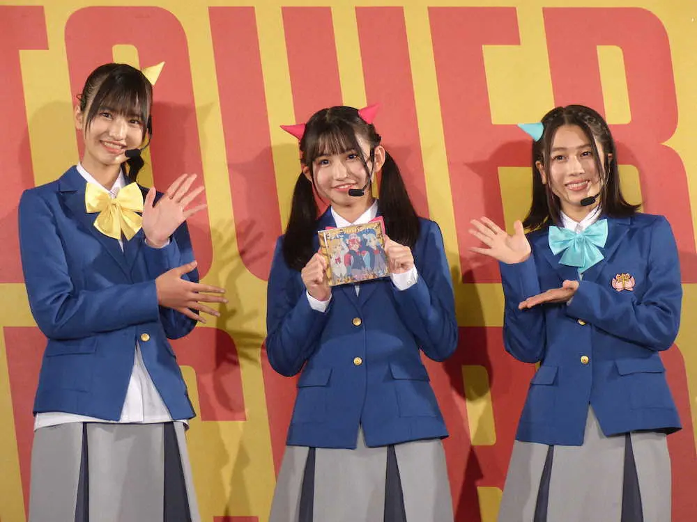 3人はテレビ東京「おはスタ」で放送されているアニメ「おにぱん!」で声優を担当。「最近、鬼だなと感じたことは?」と問われ、メンバーの野崎結愛(14)は「もうすぐ学校のテストで、範囲も広くて宿題も凄い出されて鬼な先生」と学生らしい回答。根岸実花(14)、野中ここな(16)も出席した。