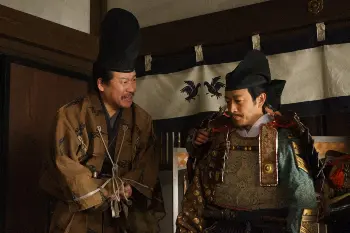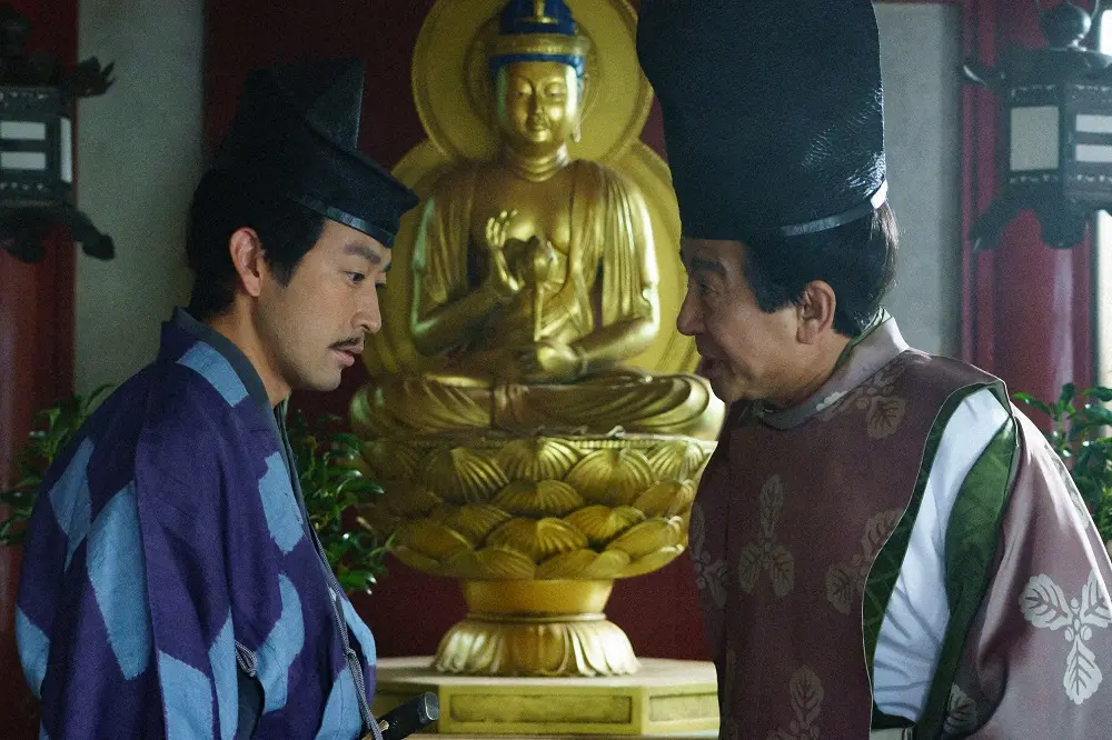 大河ドラマ「鎌倉殿の13人」第24話。鎌倉御所・御堂。源範頼(迫田孝也・左)と三善康信(小林隆)(C)NHK