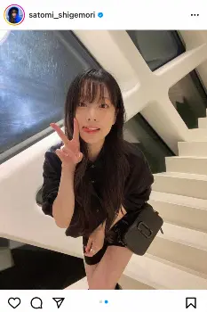 重盛さと美 “美脚チラ見せ”全身黒のショーパンコーデ披露に「若返ってる」「透明感ヤバっ」