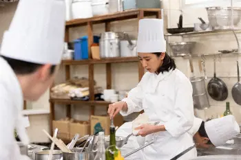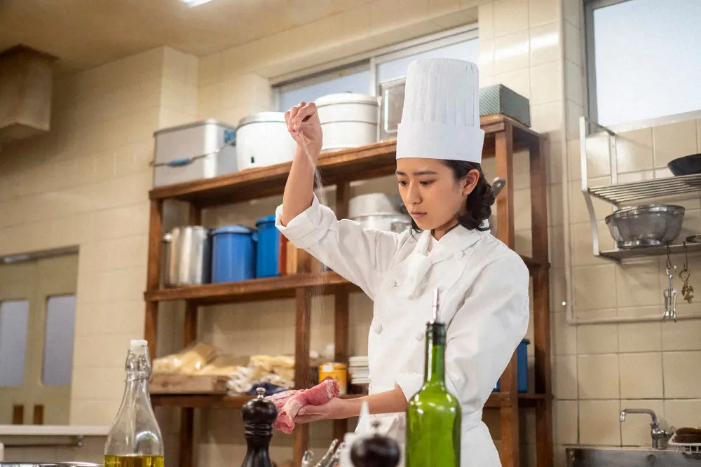 連続テレビ小説「ちむどんどん」第11週は「ポークとたまごと男と女」。厨房にて。修業を続ける暢子(黒島結菜)(C)NHK