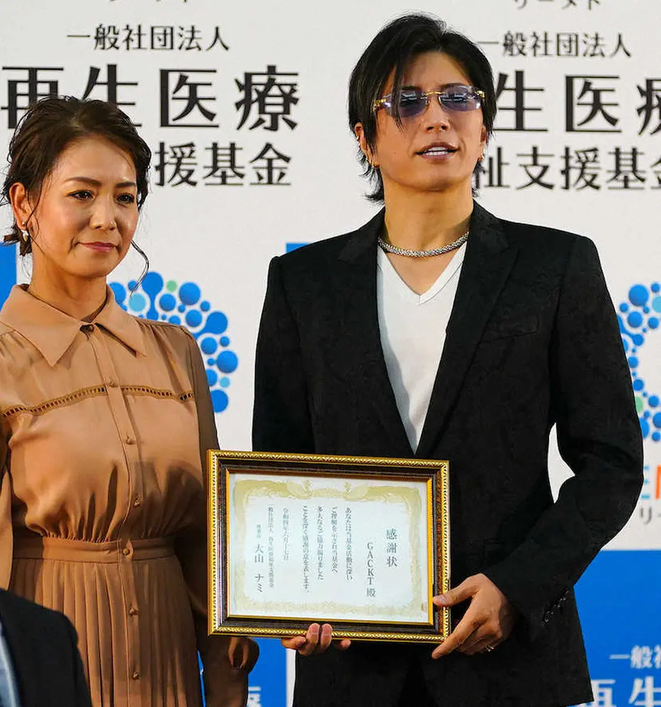 重度の発声障害などで昨年9月に活動を休止していた歌手のGACKT(48)が17日、仕事復帰後初めて公の場に登場した。大阪市内で開かれた「再生医療福祉支援基金 発起プロジェクト」の発表会見に出席。黒のスーツ姿で登場し「やっとここまで回復して、皆さんの前に顔を出せるまでになりました」としっかりした声であいさつした。