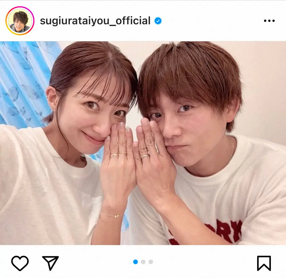 俳優の杉浦太陽(41)が21日、自身のインスタグラムを更新。妻でタレントの辻希美(35)との15回目の結婚記念日を迎え、新しく結婚指輪を購入したことを明かした。