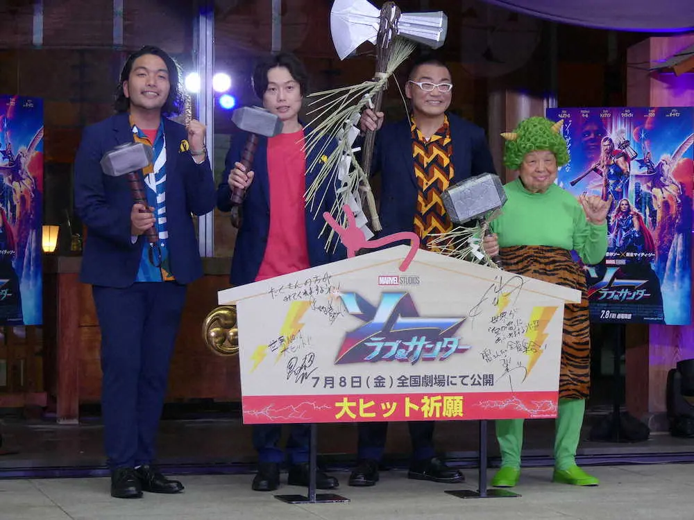 ザ・ドリフターズの高木ブー(89)が22日、東京・神楽坂の赤城神社で開かれた米映画「ソー:ラブ&サンダー」(7月8日公開)のヒット祈願イベントに登場した。