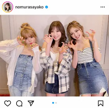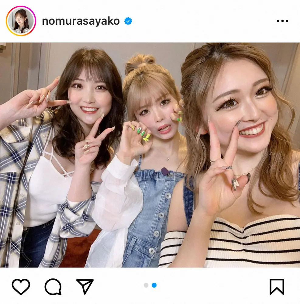 野村アナは「さやちゃみです」とモデルでタレントのゆうちゃみ、ゆいちゃみ姉妹との3ショット写真を投稿し「人生初のギャルになりました」と記した。「『よるのブランチ』にてゆうちゃみさんゆいちゃみさん姉妹にギャルを伝授していただきました」とした。