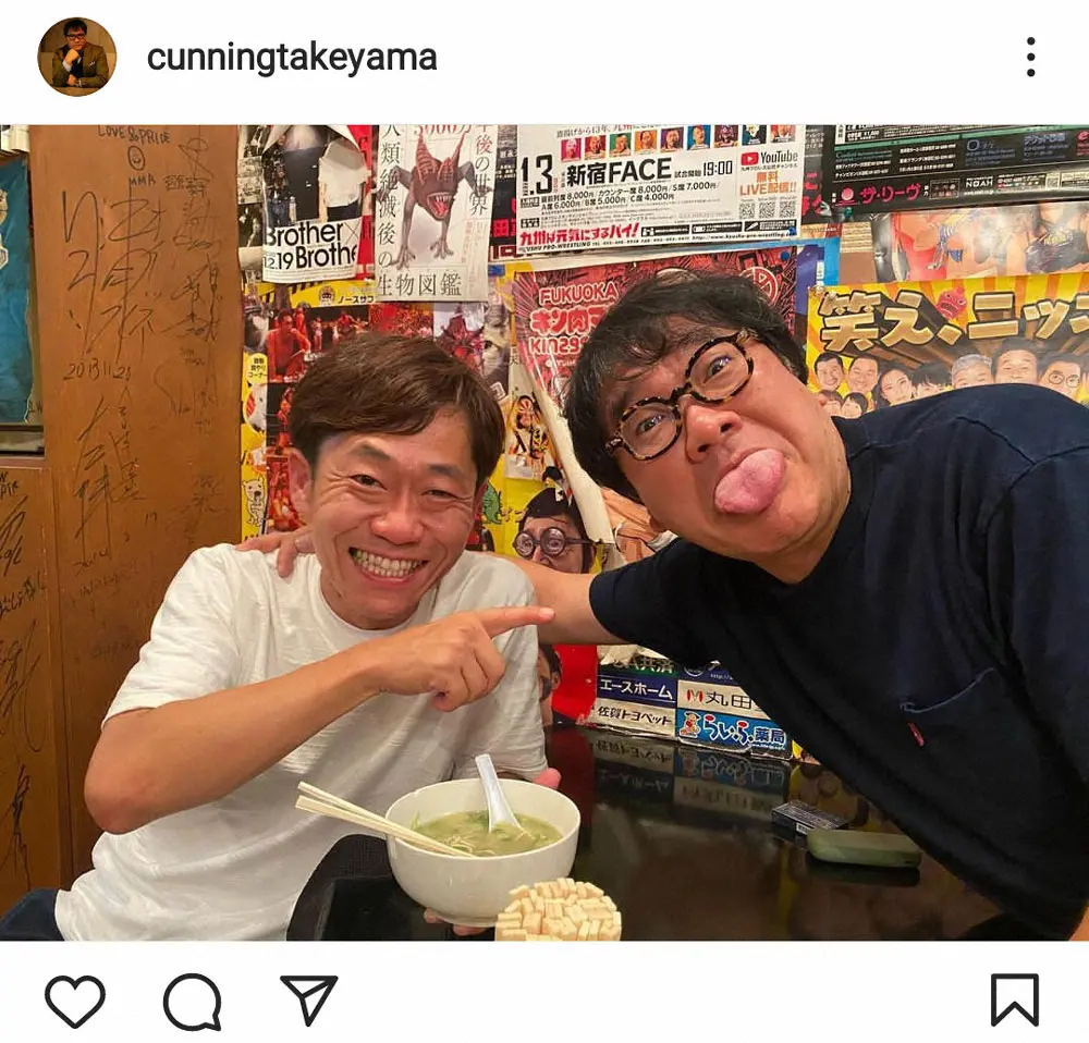 カンニング竹山 「33年前のコンビ」の相方とのツーショット披露 番組での復活予告に期待の声