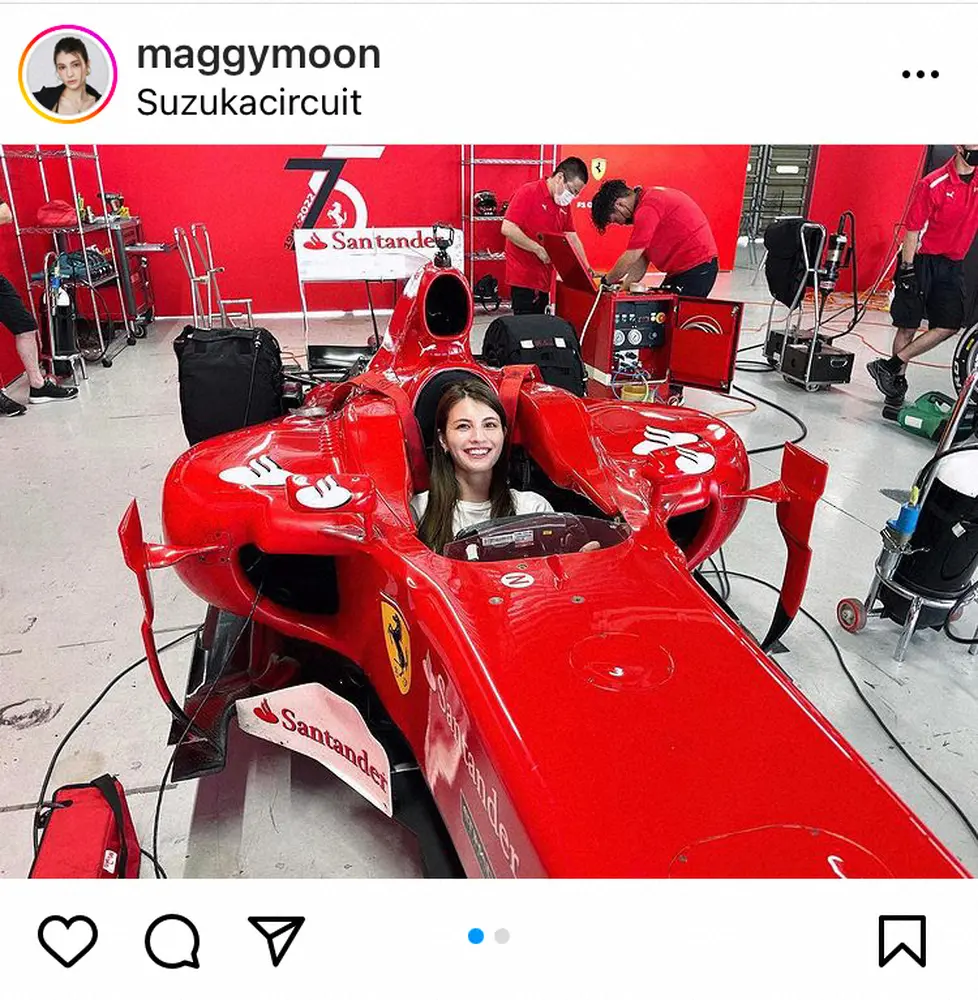 モデルでタレントのマギー(30)が25日、自身の公式インスタグラムを更新。フェラーリのF-1マシンに乗るショットを公開した。