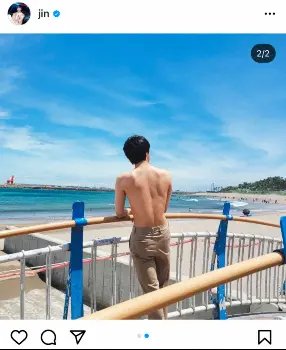 BTSジン 脇腹の友情タトゥー公開 大胆な背中ショットに「ドキドキしちゃう」「かっこ良さに動揺」の声