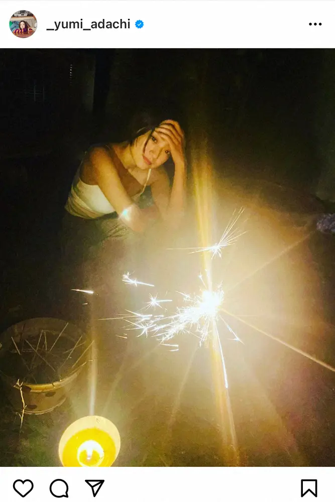 女優の安達祐実(40)が30日までに自身のインスタグラムを更新。白のキャミソール姿で花火を楽しむ1枚を披露し、反響を呼んでいる。