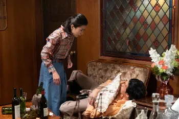 連続テレビ小説「ちむどんどん」第60話。フォンターナにて。房子(原田美枝子)と酒を酌み交わす暢子(黒島結菜)(C)NHK