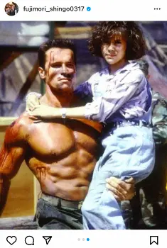 「1枚目トレーニング開始日、2枚目1年後、3枚目そのうちに。一番好きな映画コマンドー、小学生の時に見て衝撃を受けました。#シュワちゃん好きと繋がりたくはない」とつづり、3枚の写真をアップ。1枚目には、ジムに通い始める前の姿を、2枚目には鍛え上げられた現在の姿を、3枚目にはアクション映画「コマンドー」で主演したアーノルド・シュワルツェネッガーの写真を添えた。