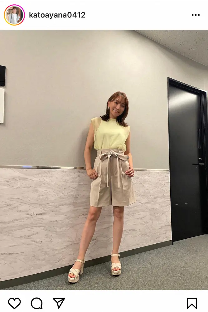 加藤綾菜 涼し気なショーパンコーデで美脚披露「スタイル良すぎる」「足めちゃめちゃ奇麗」の声