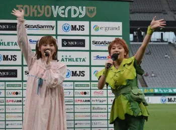 おなじみ緑の衣装で登場した吉柳は岡部とのトークの後、2人並んでサッカーボールをピッチにキックイン。「蹴り方はヴェルディの選手に教わりました」と話した吉柳は「東京国際フォーラムに公演をぜひ見に来てください」と元気にPRした。