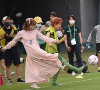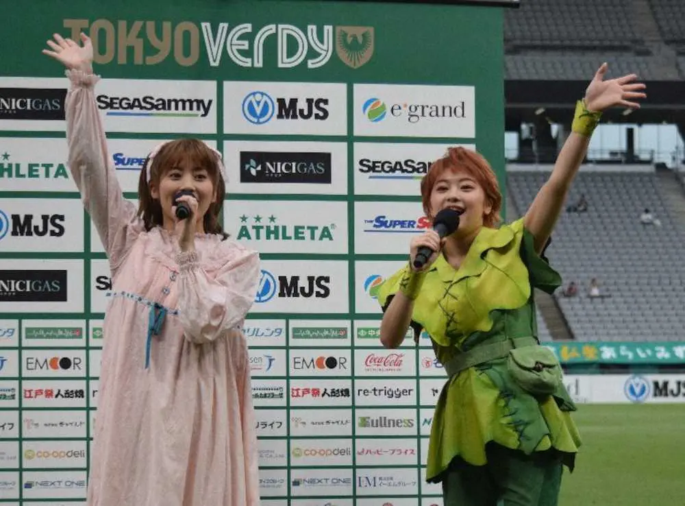 ブロードウェイミュージカル「ピーター・パン」(スポニチ主催)でピーター・パンを演じる吉柳咲良(18)とウェンディ役の岡部麟(25)が3日、東京・味の素スタジアムでのサッカーJ2・東京ヴェルディ対FC琉球戦前に“緑のコラボイベント”を行った。