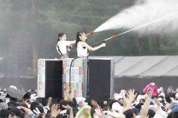 「ウォーターパーティー」と題した昼公演は、放水の演出で観客1万人をビショビショに。≒JOYにとってこの日はステージデビューとなり、天野香乃愛(15)は「今日は記念すべき初めてのステージになります。ドキドキでしたが、一生懸命踊りました。いかがでしたか?」とキュートな笑みを客席に向けた。
