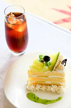 午前のおやつは藤井が千葉県産アクアメロンのプレミアムショートにアイスティー、永瀬がホットココアとアイスコーヒー。