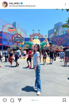 新婚の久慈暁子 夫・渡辺雄太とLAのユニバーサル・スタジオ 満喫ショットに「めっちゃ可愛い」の声