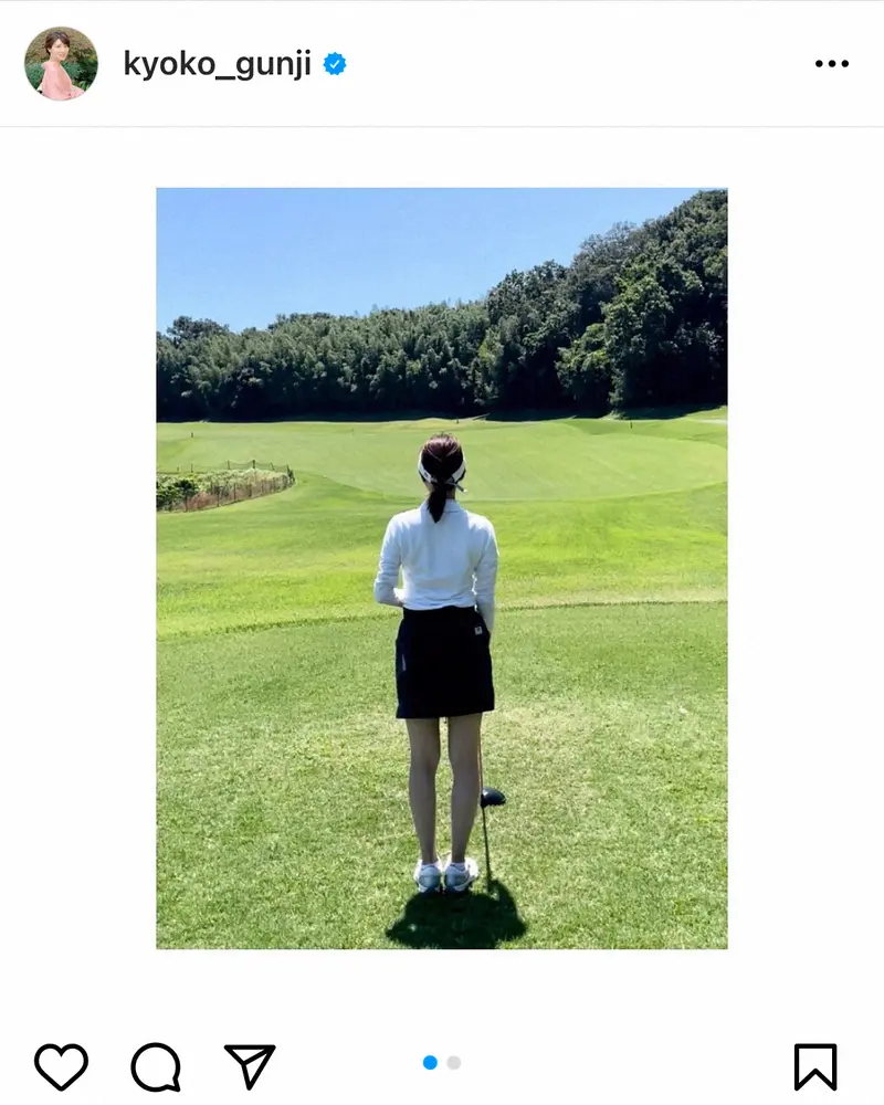 日本テレビの郡司恭子アナウンサー(32)が9日までに、自身のインスタグラムを更新。ミニスカゴルフウエア姿で力強いスイングを披露した。